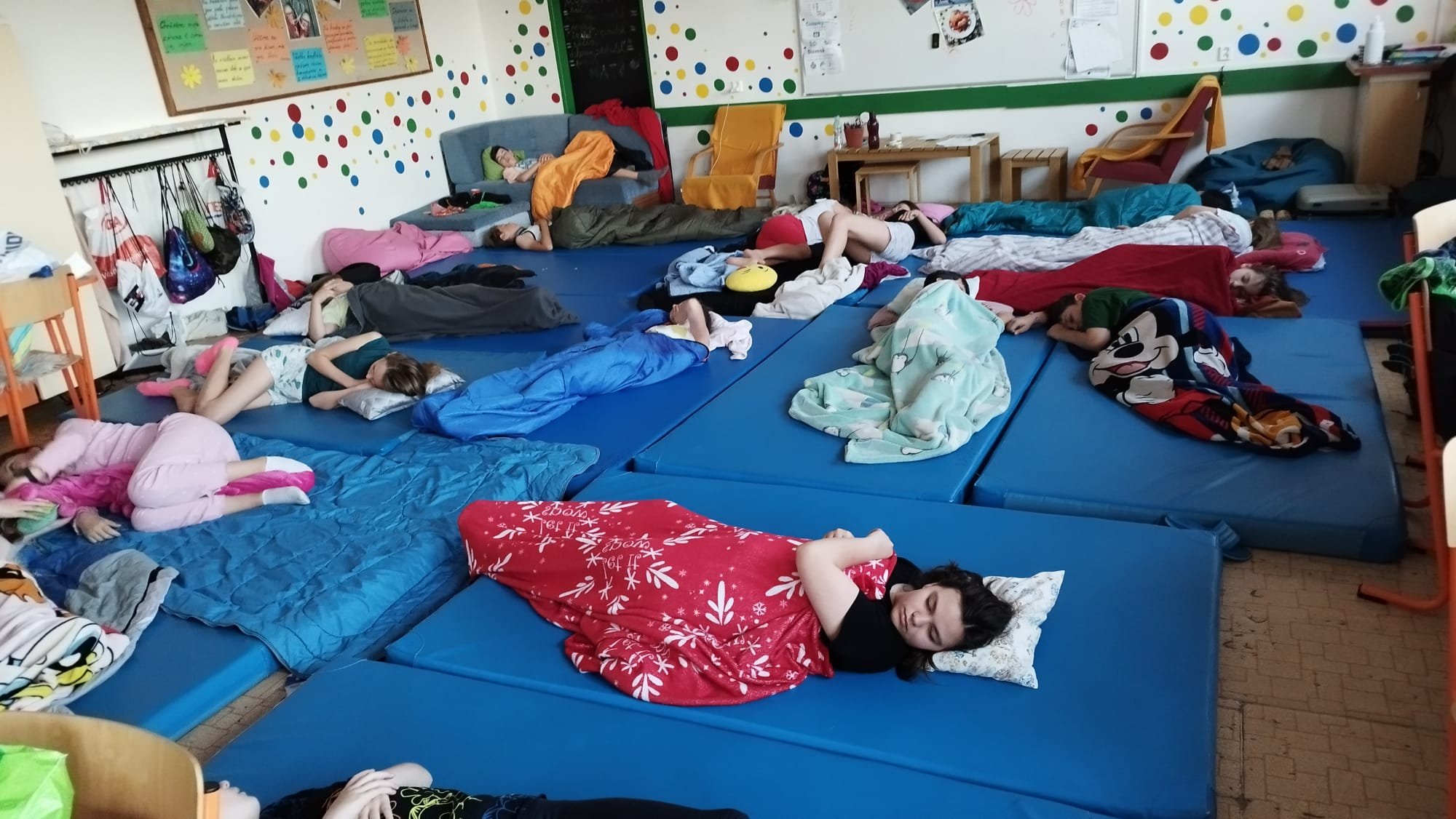 Noc z 24. na 25. júna bola pre nás, žiakov 5.A triedy, dobrodružná. Nestrávili sme ju vo svojich detských izbách, ale v škole, spolu so svojimi spolužiakmi a triednou učiteľkou. Bolo veru veselo...